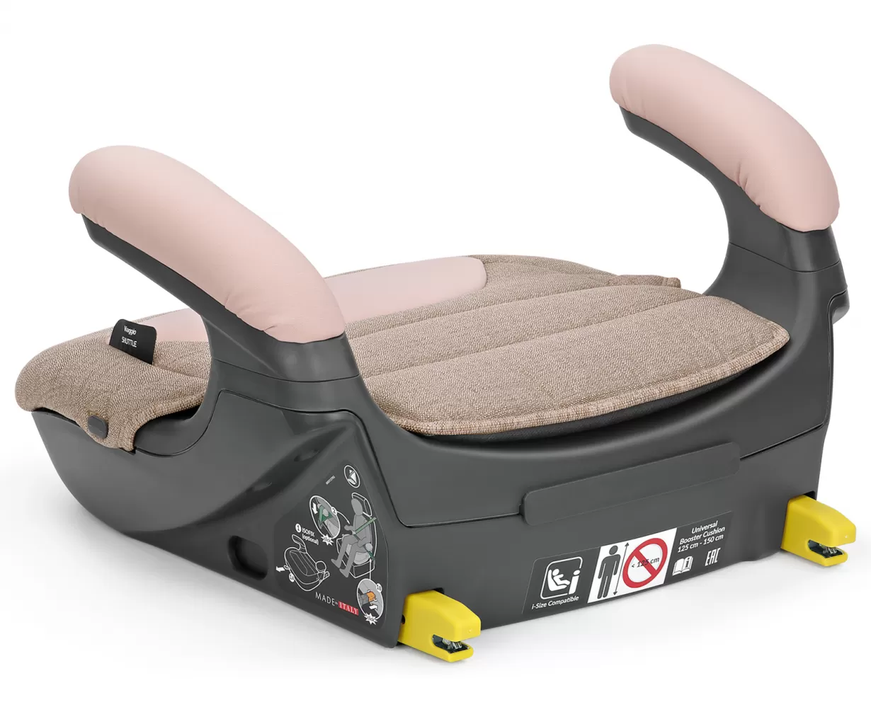 2) díky integrované i-Size Base lze společně s 3bodovým bezpečnostním pásem použít také ISOFIX konektory a připojit tak podsedák přímo ke kotevním bodům ve vozidle. Podsedák je tak vždy správně nainstalovaný a dokonale drží i v prudkých zatáčkách.
