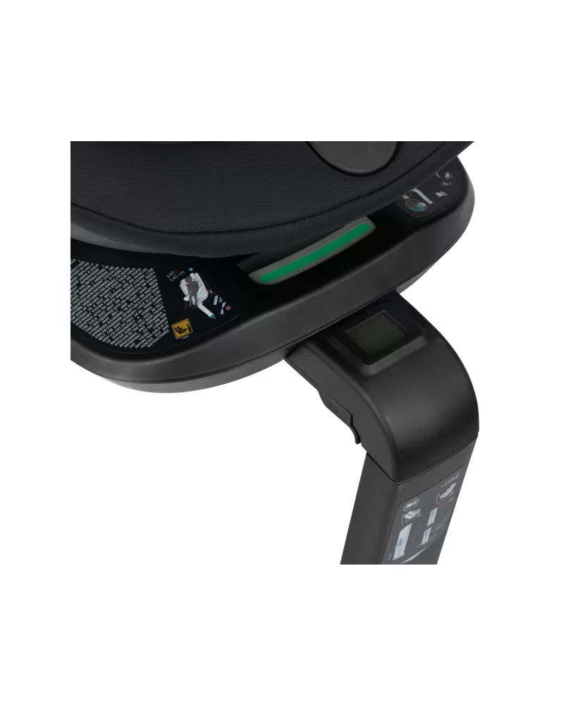 Autosedačka se do auta připevňuje s pomocí úchytů Isofix. Podpůrná noha v případě nárazu pomáhá udržet autosedačku na místě. Indikátor správné instalace s digitálním displejem ukazuje správnost připevnění úchytů Isofix a podpůrné nohy a uzamčení otočného systému.