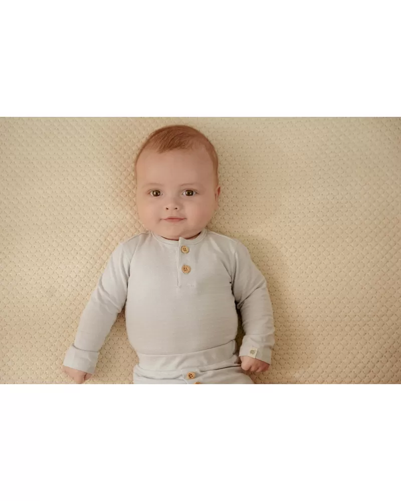 Body z jemné organické bavlny se stylovým zapínáním na knoflíčky u krku má zapínání na patentky v rozkroku pro snadné oblékání dítěte.