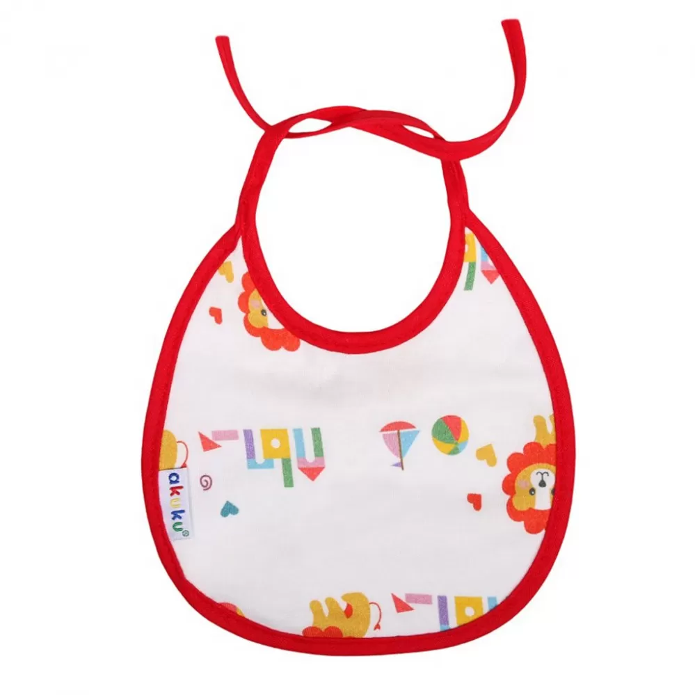 Barevný dětský bryndáček Akuku mini. Bryndáček má dvě vrstvy a zavazování za krkem na tkaničky. Rozměry: cca 14x16 cm. Složení: přední strana 100% bavlna, vnitřní strana měkčené PVC. Barvy, lemování a obrázky se liší dle aktuální nabídky.