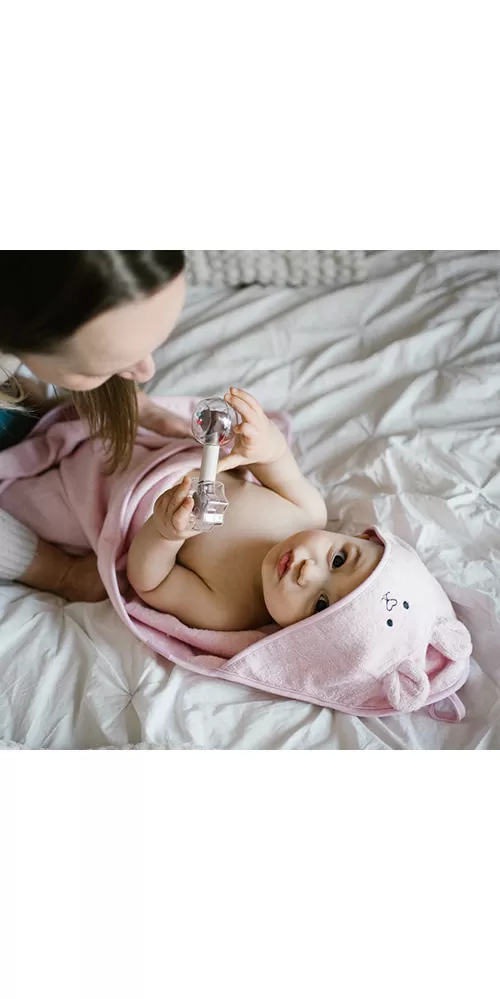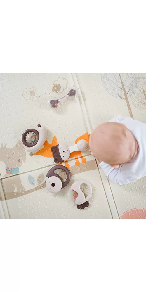 Chrastítko v roztomilém designu je ideální pro rozvoj smyslů děťátka. Je vyrobena z bezpečných materiálů a je k dispozici v ergonomickém tvaru, který dokonale padne do malých ručiček. Zvuky vydávané chrastítkem stimulují sluch, zatímco kontrastní barvy pomáhají dítěti rozvíjet zrak od prvních měsíců života. Praktické a bezpečné: - Dítě ji může pohodlně držet ve svých malých ručičkách. Je vyrobena z bezpečných a odolných materiálů bez ostrých hran. Stimulující zvuky - Po zatřesení chrastítko vydává jemné zvuky, které přitahují pozornost děťátka a rozvíjejí jeho sluch. Rozvoj motorických dovedností - Pohybování chrastítkem podporuje motorické dovednosti děťátka a pomáhá mu procvičovat úchop a manipulaci s předměty. Doporučený věk: 3 měsíce+ Rozměry chrastítka: 5 x 13,5 cm