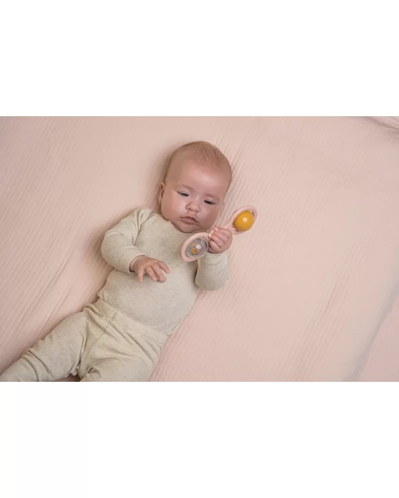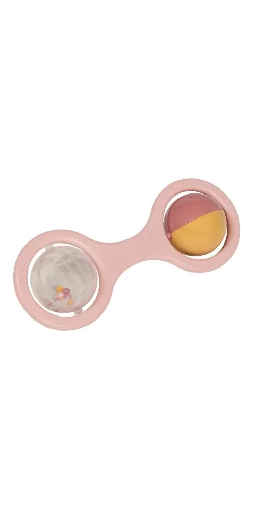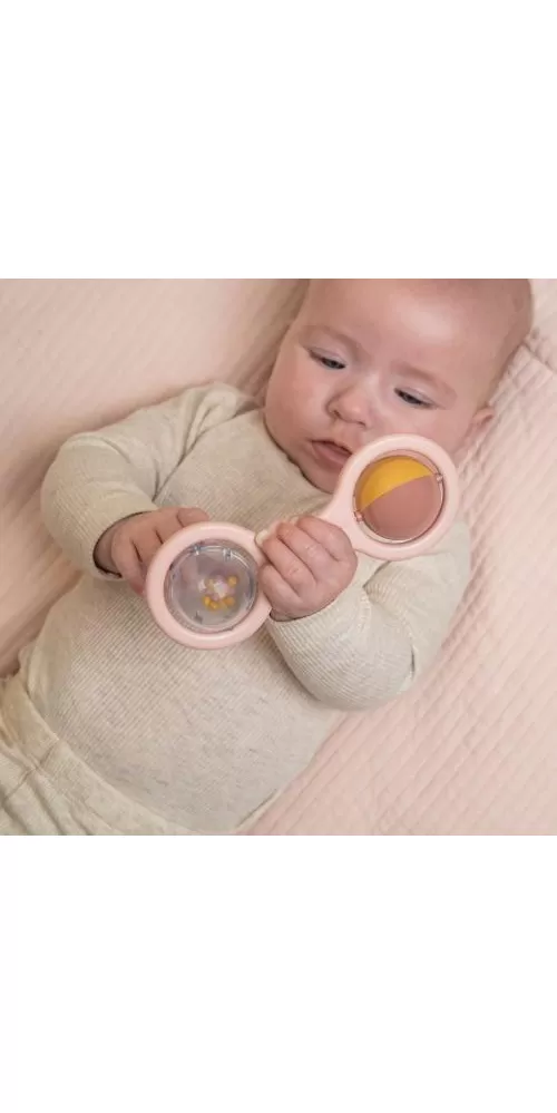 Chrastítko se dvěma otáčejícími se kuličkami je ideální jako první hračka pro vaše miminko. Pozornost dítěte upoutají chrasticí korálky v průhledné kuličce i střídající se barvy při otáčení dvoubarevné kuličky. Chrastítko má tvar pro snadné uchopení malými dětskými ručičkami.