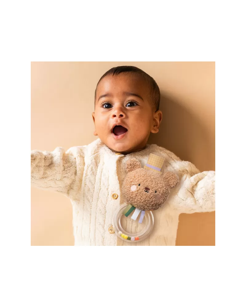 Chrastítko tvoří měkká plyšová hračka ve tvaru roztomilého medvídka Brendona a průhledný plastový kroužek naplněný barevnými korálky. Různé tvary a povrchy hračky podněcují dítě ke zkoumání rukama i ústy a pomáhají rozvíjet jemnou motoriku a smysly dítěte.