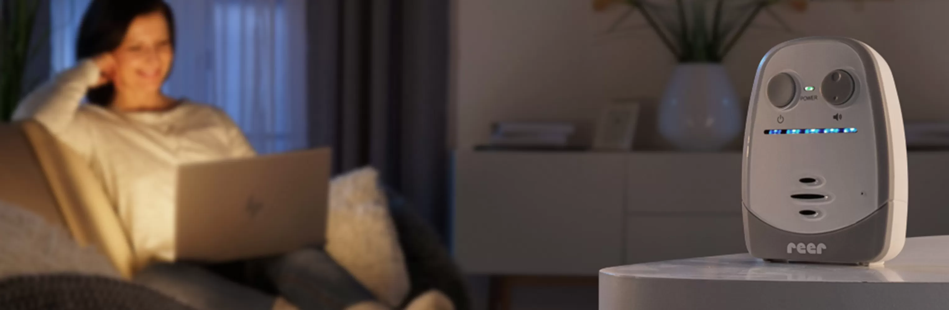 Aby vám neunikla žádná činnost vašeho malého miláčku, i když jste v hlučném prostředí a slyšíte jen špatně přenos hluku, indikátor úrovně hluku se rozsvítí, jakmile rodičovská jednotka přijme signál. LED diody, které se rozsvítí, vám ukáží, zda dětský pokoj vydává pouze tiché zvuky nebo už hlasitě pláče. Tato funkce má také další užitečné funkce. LED pásek vám signalizuje, jakmile dojde k překročení dosahu a přerušení spojení. Zde si také můžete přečíst hlasitost, na kterou je nastavena rodičovská jednotka. V případě potřeby můžete také zjistit stav baterie pomocí LED diod.
