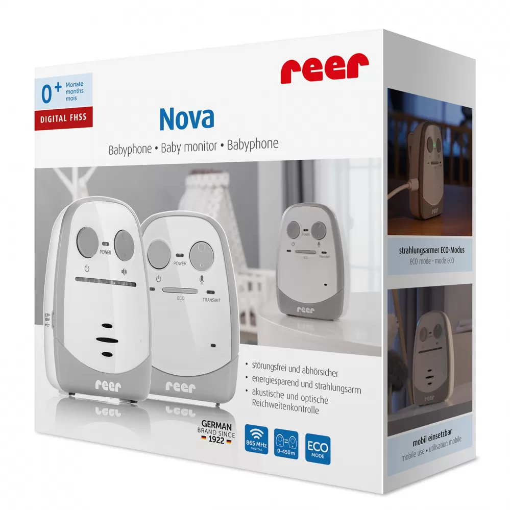 Dětský monitor Nova hlídá spící dítě s optimálně sladěnou kombinací dětské a rodičovské jednotky. Díky technologii FHSS (Frequency Hopping Spread Spectrum) je zaručeno nerušené a křišťálově čisté připojení.