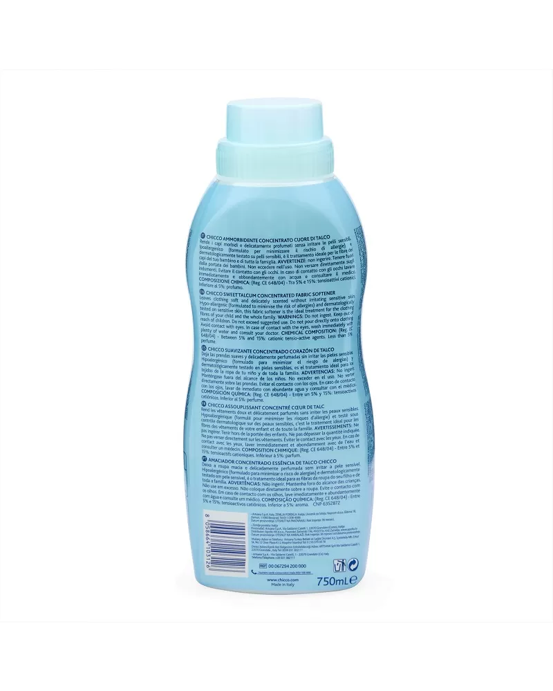 Chicco aviváž osvěžuje a zjemňuje všechny dětské věcičky miminka bez podráždění jeho citlivé pokožky. Hypoalergenní, neobsahuje barviva a je dermatologicky testováno na citlivé pokožce. Koncentrované složení s "zápach odstraňující" technologií, která zanechává oblečení čisté a jemně navoněné. Dostupné v 3 vůních: Sladký pudr, Květinové objetí a Jemný dotek. Standardní počet praní: 30 Objem: 750 ml.