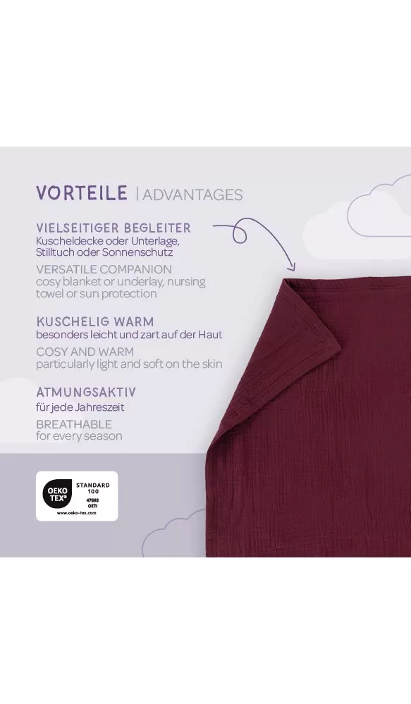 TRÄUMELAND Mušelínová deka 100 x 75 cm plum