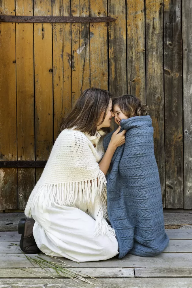 Deka s kožíškem do kočárku a do postýlky oboustranná jedna strana má robustní pletený vzor druhá strana má měkký kožíšek materiál pletené… Celý popis