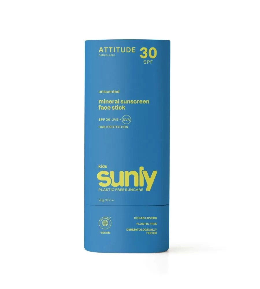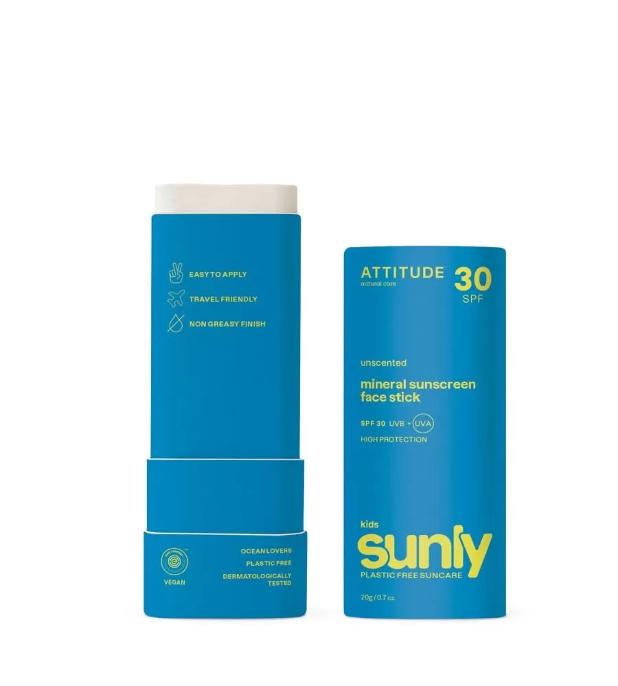 Řada přírodních opalovacích tyčinek Sunly, které se ještě lépe nanášejí a kloužou po pokožce a navíc s nadčasovým designem v absolutně biologicky rozložitelném obalu oválném tvaru pro snadnější aplikaci. Tento přírodní, veganský minerální opalovací krém v tyčince od ATTITUDE je speciálně vyvinutý pro dětskou pokožku obličeje a rtů a spolehlivě chrání jejich křehkou a citlivou pokožku. Tato minerální ochranná tyčinka je díky svému menšímu provedení ideální pro obličej, rty a jakékoliv další místa na těle, které je třeba chránit před slunečním zářením. Díky praktickému způsobu aplikace tyčinkou se není třeba krému dotýkat. Vaše ruce tak zůstanou čisté a krému se při aplikaci méně vypotřebuje. Opalovací tyčinka ATTITUDE má navíc kompletně bezplastový obal, který zbytečně nezatěžuje životní prostředí a je zcela rozložitelný. Díky obsaženému hroznovému oleji a bambuckému máslu hydratuje pokožku. Je příkladnou ukázkou rovnováhy mezi bezpečností přípravku a jeho funkčností, ingredience jsou pouze minerálního a rostlinného původu. Absolutně bez parfemace. Tyčinka vytvoří lehkou bariéru na pokožce, která účinně chrání před UVA i UVB zářením. Pokožka je tak chráněna před negativními vlivy slunečního záření, a to bez kontaktu se škodlivými látkami či chemikáliemi, které opalovací krémy často obsahují. Je vyrobena výhradně z biologicky rozložitelných složek. Aktivní látkou je oxid zinečnatý bez nanočástic, který nabízí širokospektrální ochranu. "Bez nanočástic" znamená, že molekuly nejsou tak malé, aby prostoupily do krevního řečiště. Oxid zinečnatý je lepší než oxid titaničitý, který se často v minerálních krémech používá - oxid titaničitý je většinou s nanočásticemi a zároveň nechrání plně před UVA i UVB zářením. Složení: Oxyde de zinc (20 %),Vitis Vinifera (Grape) Seed Oil, Caprylic/Capric Triglyceride, C10-18, Triglycerides, Helianthus Annuus (Sunflower) Seed Wax, Jojoba Esters, Capryloyl Glycerin/Sebacic Acid Copolymer, Polyhydroxystearic Acid, Behenyl Behenate, Hydroxyapatite, Acacia Decurrens Flower Wax, Polyglycerin-3, Euphorbia Cerifera (Candelilla) Wax, Glyceryl Behenate, Tocopherol. Upozornění: Skladujte při teplotách nižších než 32 °C. Pouze pro vnější použití. Adresa dodavatele: Naty AB, Swedenborgsgatan 20,118 27 Stockholm, Sweden, www.naty.com