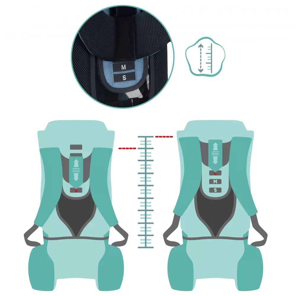 Díky měkkému polstrování a nastavitelným ramenním popruhům bude každá cesta příjemná a pohodlná. Bederní pás přispívá k rovnoměrnému rozložení hmotnosti dítěte, čímž snižuje zatížení zad a ramen nosící osoby. Při náročnějších výletech určitě oceníte i prodyšný zadní panel ze síťoviny, který s integrovaným ventilačním systémem zabraňuje nadměrnému pocení a zajišťuje příjemné klima po celou dobu nošení.
