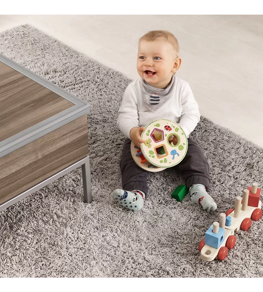 Díky speciální povrchové struktuře je ochrana hran obzvláště odolná a trvanlivá. Materiál je odolný proti poškrábání a okousání na rozdíl od mnoha produktů vyrobených z jednoduchých pěn. Tímto způsobem zůstane ochrana na svém místě po dlouhou dobu a vaše dítě se nemůže udusit okousaným kouskem. Materiál, který byl testován na škodlivé látky a je odolný vůči slinám a potu, je při olíznutí zcela nezávadný. Lehké znečištění lze rychle a snadno setřít.