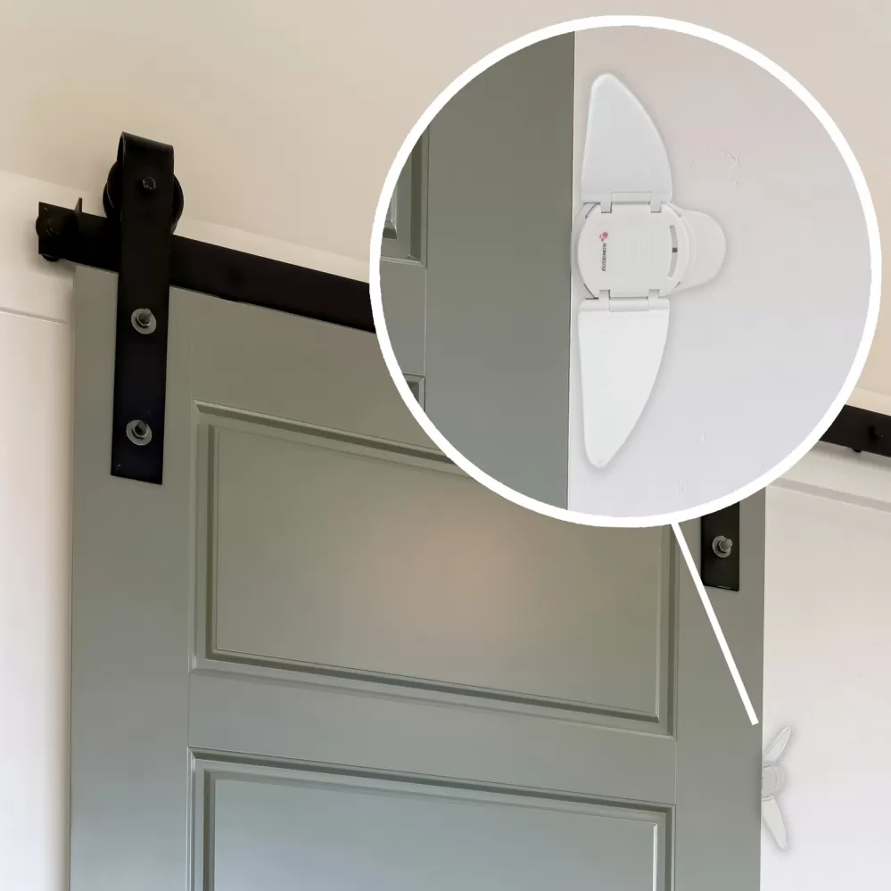 Praktický zámek dovoluje zcela kontrolovat míru otevření posuvných dveří. Snadná instalace probíhá pomocí 3M pásky. Posuvné tlačítko uprostřed křidélek pak umožňuje dveře zajistit nebo otevřít.