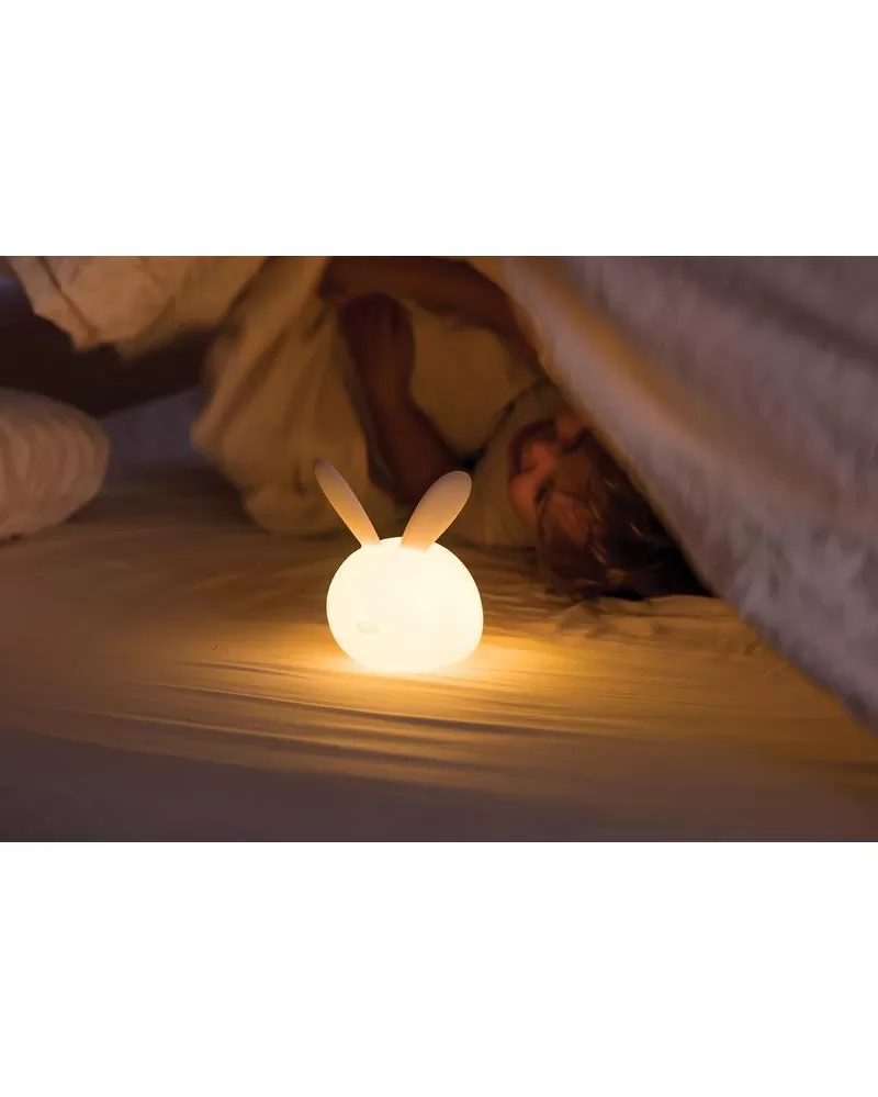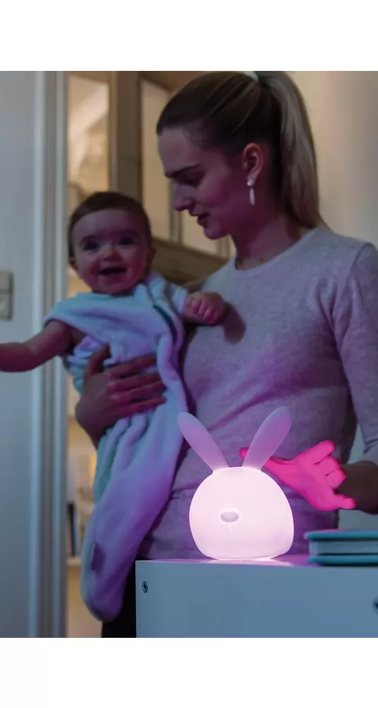 Stylové noční světélko v designu zajíčka od Nattou si zamilujete na první pohled i na první dotek! - Noční světélko se automaticky aktivuje pláčem dítěte, aby ho vizuálně uklidnilo. - Mění barvu na základě pohybu, respektive otočením světélka směrem nahoru-dolů v rukách. K dispozici je 7 různých relaxačních barev. - Intenzita osvětlení odpovídá nabití světélka- čím je světélko více nabité, intenzita osvětlení je silnější - 4 intenzity osvětlení. - Díky LED osvětlení není světélko nikdy přehřáté a na dotek horké, což zajistí bezpečnou hru vašeho dítěte. - Na dotek je velmi měkké, má silikonový povrch, který neobsahuje BPA.