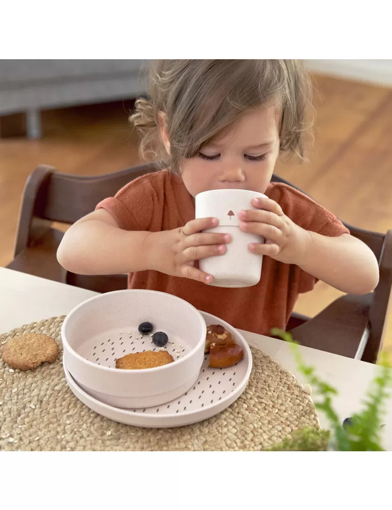 Lehký dětský talířek v krásném designu, vyrobený za použití trvale udržitelných zdrojů, je určený pro děti od 6 měsíců.