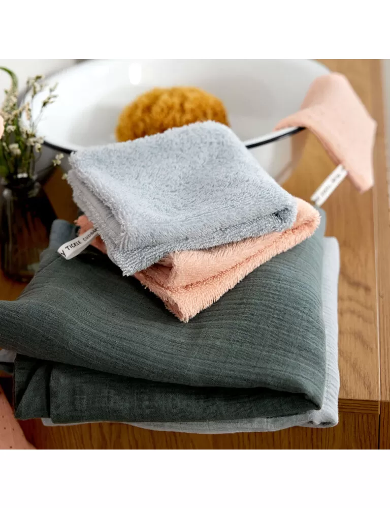 Žínky jsou pomocníkem pro každodenní péči o miminko. Jsou vyrobené z předepraného mušelínu a froté, které jsou prodyšné a vhodné zejména pro dětskou pokožku. Set 3 žínek může být použit jak k mytí obličeje, tak k mytí celého těla děťátka. Jsou určené jak novorozencům, tak dětem do 3 let. Žínky mají mnohostranné využití, lze je rovněž využít např. pro domácí úklid.