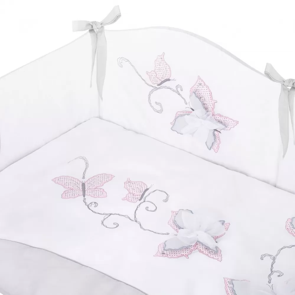 Krásná dětská bavlněná 5-dílná souprava do postýlky Belisima Butterfly pro miminka. Je vyrobena z měkkého, příjemného materiálu. Souprava obsahuje povlečení na polštářek cca 40x60 cm, povlečení na peřinku cca 100x135 cm, mantinel cca 180 cm, výplň...