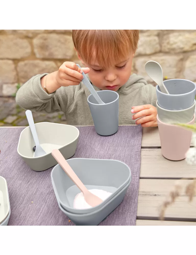 Dětské lžičky v moderním designu, vyrobené z biokompozitu, určené dětem od 6 měsíců.