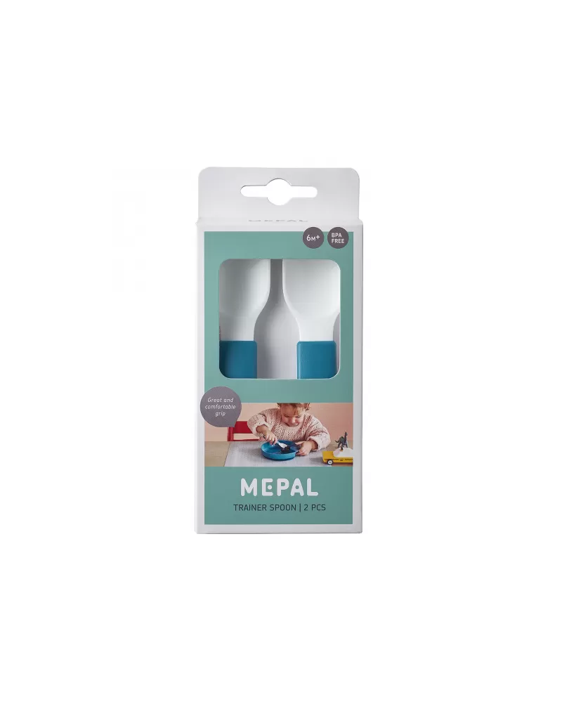 Lžičky jsou součástí designové kolekce Mepal Mio Deep Blue, je tedy možné k nim dokoupit další doplňky pro dětské stolování ve stejném designu.
