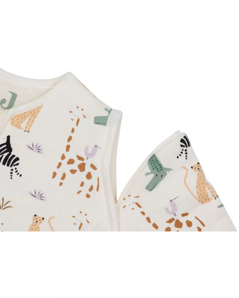 Praktický spací pytel s oddělitelnými rukávy nabízí variabilitu při použití dle počasí a teploty v místnosti. Díky jemné výplni je vhodný pro použití místo peřinky. Spací pytel zajistí, že se dítě v noci neodkope a bude tak po celou dobu spánku v pohodlí a teple bez rizika prochladnutí. Kryté zipy v průramcích umožňují snadné oddělení rukávů, pokud chcete spací pytel používat v teplejším prostředí bez rukávů. Zip na přední straně umožňuje snadné vložení dítěte do spacího pytle i přebalování během spaní.
