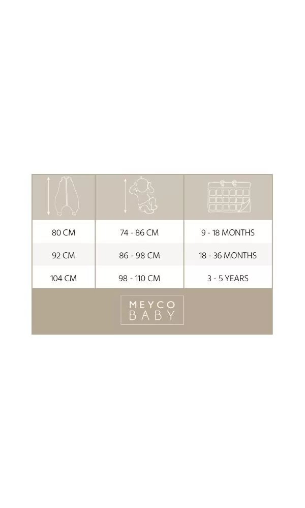 Pro určení správné velikosti spacího pytle je důležitá výška vašeho dítěte než věk. Nikdy nepoužívejte spací pytel, pokud hlava vašeho děťátka projde otvorem na krk. Vždy se tedy ujistěte, že používáte spací pytel správné velikosti.
