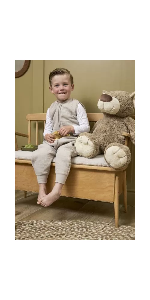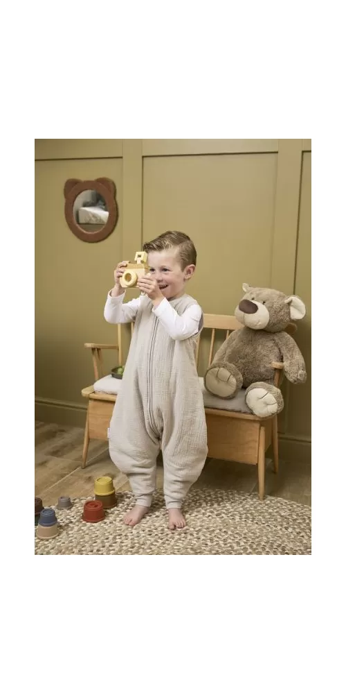 Pohodlný a prodyšný spací vak díky mušelínové tkanině s otvory pro nožičky.