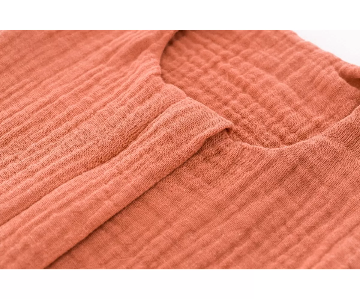 Nejdůležitější je, že látka je prodyšná. Volná a lehká vazba mušelínu umožňuje cirkulaci vzduchu a snižuje riziko přehřátí. Tato funkce zajišťuje, že se vaše dítě cítí pohodlně. Mušelín je také odolný. Výrobek vyrobený z přírodního vlákna mušelínu je extra odolný a vydrží vícenásobné praní – obrovská výhoda pro rodiče. S každým praním je dokonce měkčí.