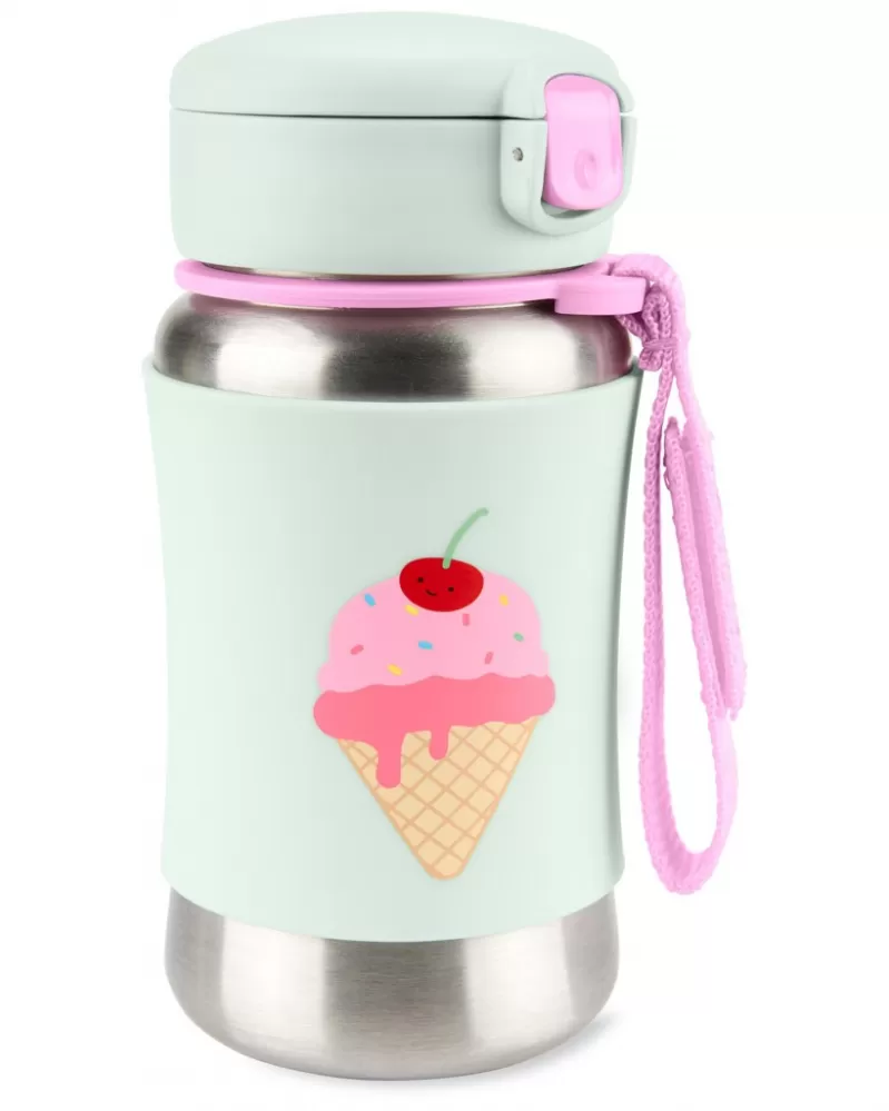 Láhev na vodu z nerezavějící oceli se skvělým designem, díky kterému mohou vyniknout malé osobnosti, pomáhá udržovat nápoje chladné i na cestách. Zavírací víko udržuje brčko čistou, zatímco protiskluzový silikonový návlek chrání malé ručičky před studenými povrchy. Obsahuje praktickou úchytku na suchý zip. Nakombinujte si produkty ve stejném designu z celé kolekce Spark Style.