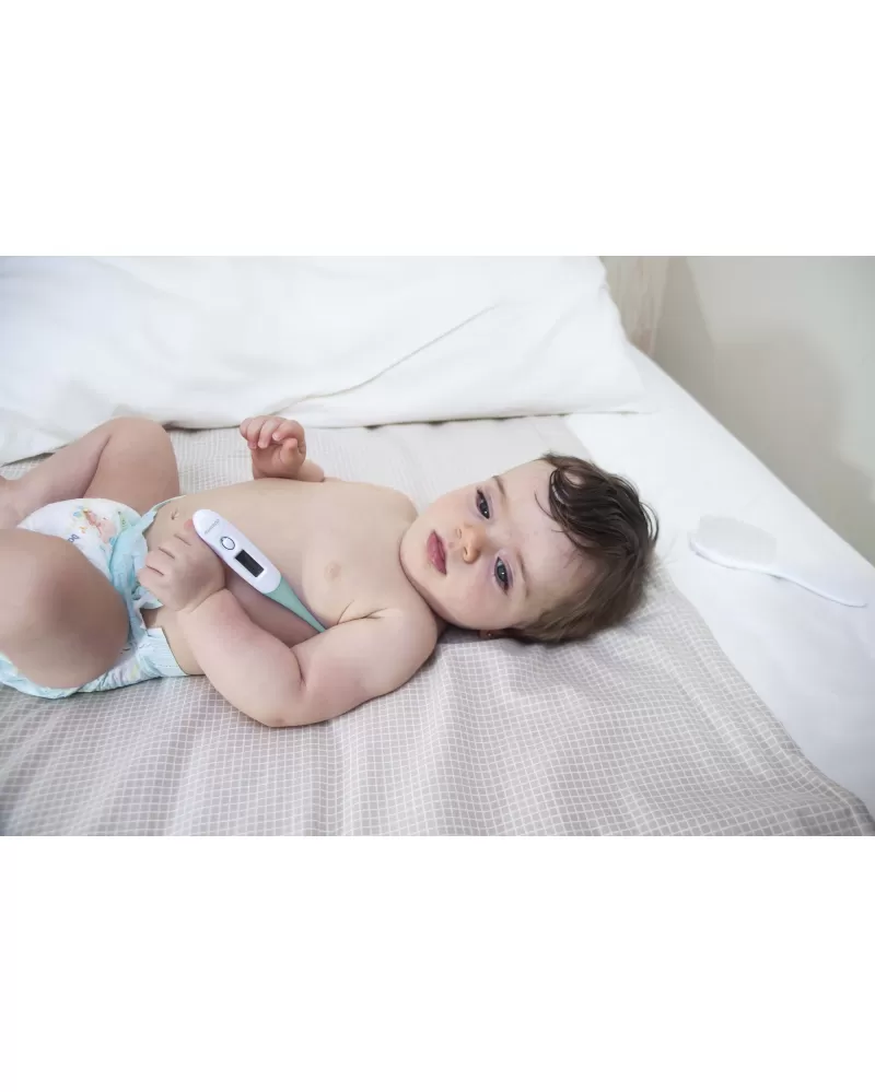 Díky pouzdru, které teploměr chrání před poškozením, je teploměr ideální i na cestování s dětmi.