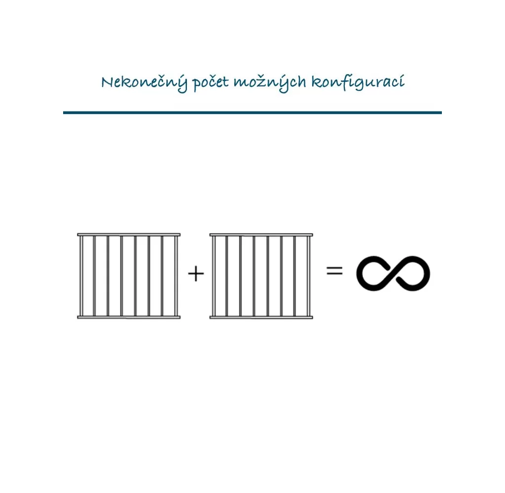 Technická specifikace: Výška 70,5 cm Šířka 350 cm Hloubka 3,5 cm. Minimální šířka otvoru 90 cm. Maximální šířka prostoru 350 cm Materiál PE (polyetylen) a ocel s práškovým nástřikem Barva Černá Číslo položky: BD501510 Bezpečnostní norma EN 1930 : 2011
