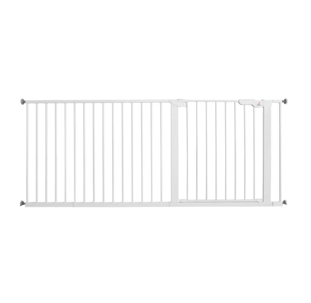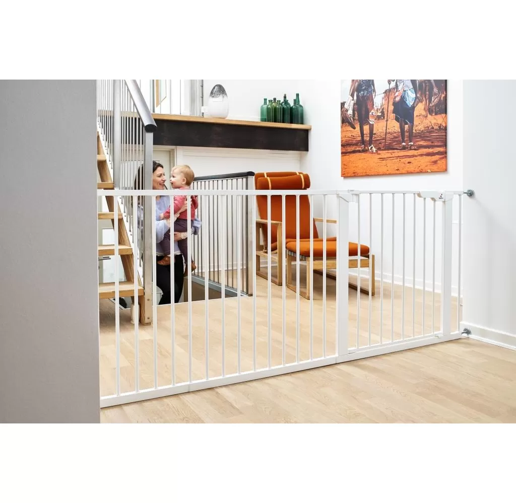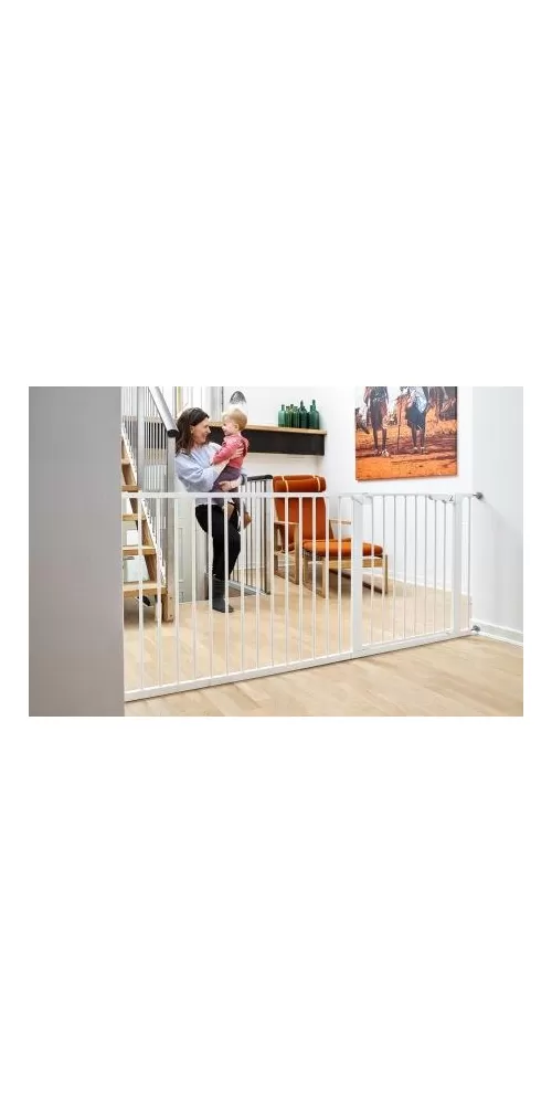 Parametry: Upevnění: tlakové Materiál: kov Barva: bílá Rozměr dvířek 56 cm. Výška 73cm. Odpovídá nejnovější evropské normě EN1930:2011 a ASTF1004 Vyrobeno v Dánsku. Vhodné pro děti do 24 měsíců. Hmotnost včetně krabice 9,2 kg.