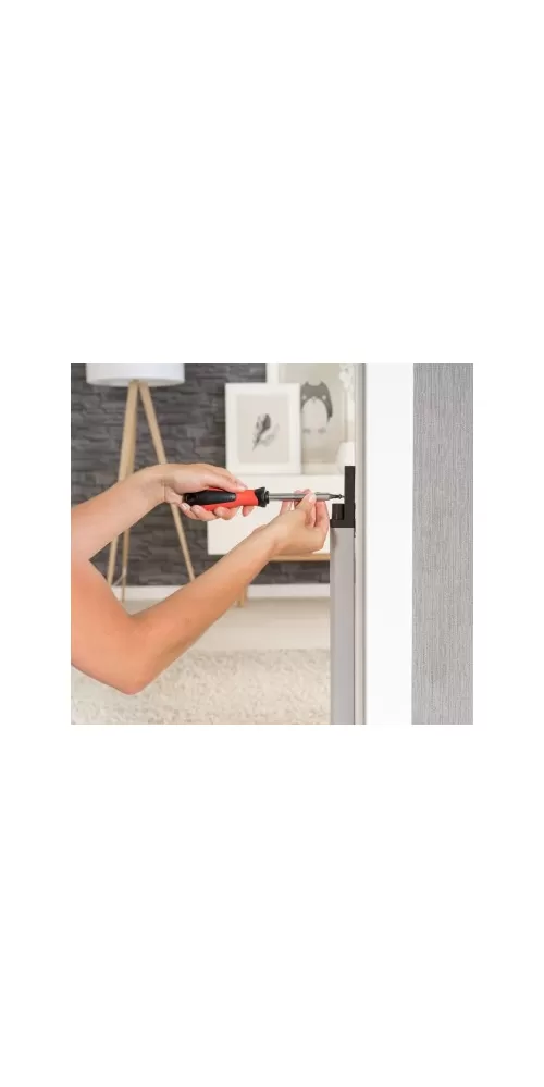 Hliníkové lišty rychloupínací soustavy EasyFix lze namontovat jen v několika rychlých krocích bez námahy a bez složitého měření. Poté se zábrana Trend zavěsí do kolejnic - a hotovo. Aby nedošlo k poškození rámu dveří, může být EasyFix instalován i před rámem dveří. Pokud je EasyFix namontován na několika místech v domě (dodatečné hliníkové kolejnice jsou k dispozici samostatně), dvířka zábrany mohou být použity samostatně kdekoli. Při nepoužívání jsou hliníkové kolejnice téměř neviditelné.