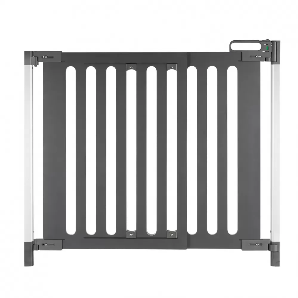 Dvojité zamykání funkční rukojeti zamezuje dětem otevření zábrany, ale pro dospělé je snadné jej ovládat jednou rukou. Barevný indikátor integrovaný do rukojeti zobrazuje vizuálně, zda je zábrana správně uzavřená a poskytuje tak ještě větší bezpečnost.