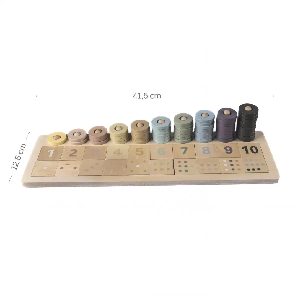 Objevte svět čísel hravou a přirozenou cestou! Dřevěná Montessori hra Počítání je ideální pomůcka pro malé objevitele, kteří se právě začínají seznamovat s čísly, barvami a základní matematikou. Vychází z principů Montessori pedagogiky a podporuje logické myšlení, jemnou motoriku a koordinaci oko–ruka.