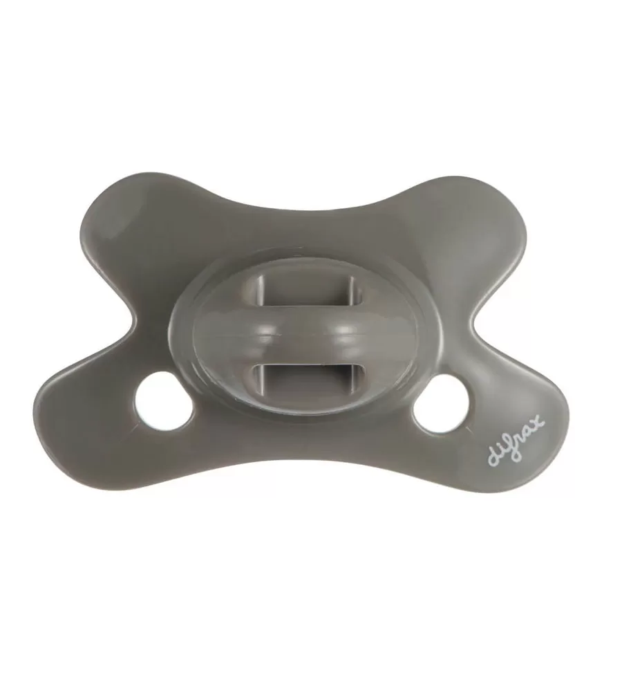 Unikátní dudlík Difrax má kotouč ve tvaru motýla, který zajistí, že dudlík dokonale padne tvaru obličeje vašeho miminka. Vykrojení kotouče umožňuje miminku volné dýchání nosem. Dva přídavné otvory zabezpečují dostatečný průchod vzduchu, čímž omezují možnost podrážení pokožky miminka. Difrax dudlíky navíc velmi dobře vypadájí.
