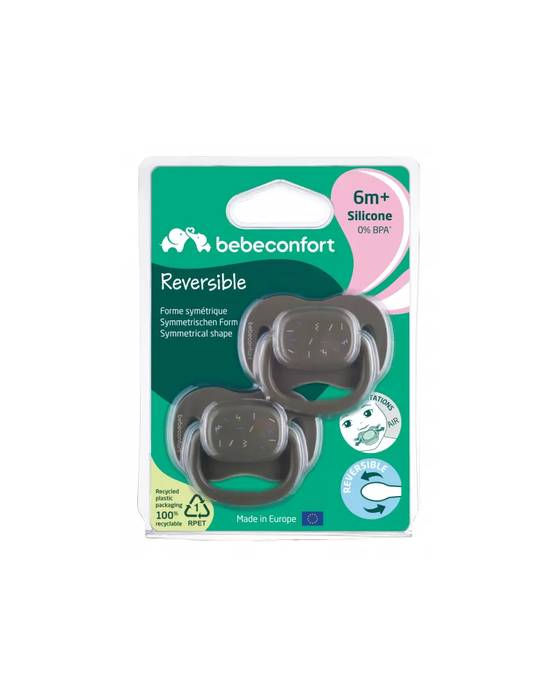 Šidítko se symetrickou savičkou z měkkého silikonu. Vnější část šidítka má otvory pro cirkulaci vzduchu, aby nedošlo k podráždění citlivé pokožky kolem úst.