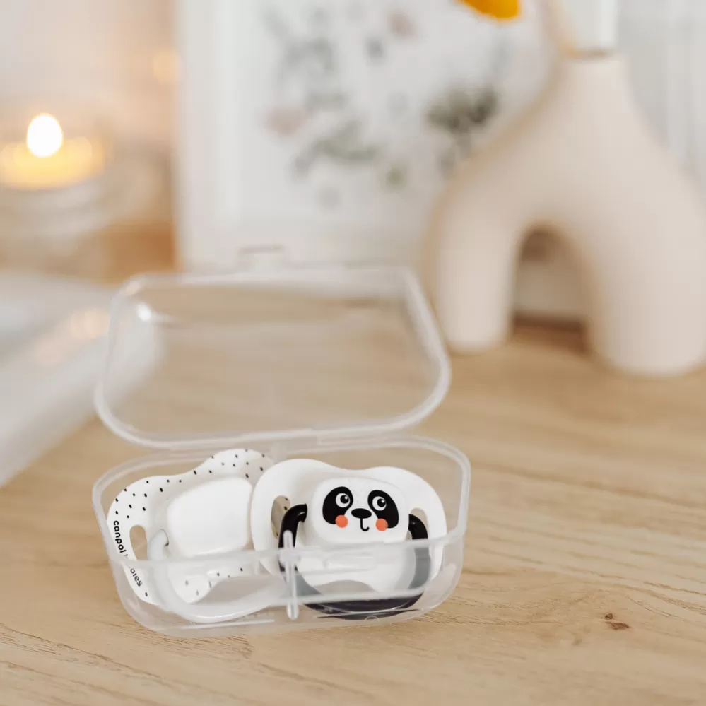 Dudlík BabiesBoo vaše miminko uvolní a uklidní. Špička symetrického tvaru je vyrobena z nejkvalitnějšího, bezpečného a jemného silikonu. Je bez chuti a zápachu, což miminku usnadňuje přijetí dudlíku. Větrací otvory ve štítu zajišťují volné dýchání a polykání slin. Speciálně navržený tvar štítku minimalizuje tlak dudlíku na jemnou tvář dítěte a zabraňuje podráždění. Dudlík je bezpečný a snadno se udržuje v čistotě - moderní pouzdro, které lze využít k uskladnění, ale i k rychlé a pohodlné sterilizaci v mikrovlnné troubě. Stačí jen trocha vody a 2 minuty, aby byly dudlíky hygienicky čisté. Pohodlná rukojeť dudlíku umožňuje připevnit řetízek a usnadňuje jeho podávání miminku. Canpol babies symetrické dudlíky BabiesBoo jsou pevné a odolné proti deformaci. Při výrobě nebyly použity BPA ani jiné škodlivé látky. Canpol babies dudlík symetrický BabiesBoo se dobře přizpůsobí ústům dítěte bez ohledu na to, jak je umístěn, a jeho tvar je považován za nejfyziologičtější a podporuje zachování přirozeného rytmu sání a správný vývoj řeči. Dudlík se doporučuje pro děti od 6 do 18 měsíců. Canpol babies symetrický dudlík BabiesBoo je k dispozici ve dvou jedinečných designech a různých velikostech - roste s vaším dítětem. Vlastnosti: - 100% bezpečný hypoalergenní silikon – bez zápachu a chuti. - Gumička dudlíku má symetrický tvar. - Dudlík je pevný a odolný proti deformaci. - Odvětrávaný štítek – zajišťuje volné dýchání a zabraňuje podráždění pokožky. - Dezinfekční kapsle pro snadnou a rychlou dezinfekci v mikrovlnné troubě. - Pohodlný úchyt – usnadňuje předávání dudlíku miminku a připevnění ke stužce nebo řetízku. - Vhodné pro děti od 6 do 18 měsíců. - Neobsahuje BPA. Pro bezpečí vašeho dítěte VAROVÁNÍ! Před každým použitím výrobek důkladně zkontrolujte. Táhněte za silikonovou část dudlíku ve všech směrech. Při prvních známkách poškození nebo opotřebení materiálu jej ihned vyhoďte. Používejte pouze speciální stužky/řetízky na dudlíky, které odpovídají normě EN 12586. Nikdy nepřipevňujte k dudlíku jiné stužky nebo šňůrky, vaše dítě by se jimi mohlo uškrtit. Adresa výrobce: Canpol Sp. z o.o. 02-884 Warszawa, ul. Puławska 430, Polska Słubica B, ul. Graniczna 4, 96-321 Żabia Wola, Poland tel. (+48 46) 858 00 00 fax: (+48 46) 858 00 01 babies@canpolbabies.com www.canpolbabies.com