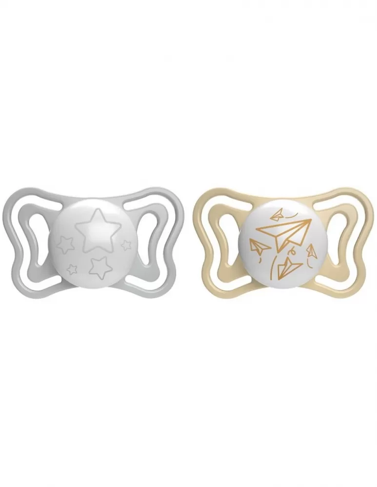 Dudlík Chicco Physio Light řady Physioforma představuje aktivní ortodontický uklidňující dudlík s odlehčenou, extra odvětrávanou základnou, aby děťátko ani nevědělo, že má něco na tvářičce. Tvarovaný štít s větracími otvory pro cirkulaci vzduchu vyhovuje malým konturám obličeje dítěte a pomáhá snižovat hromadění vlhkosti kolem pusinek. Extra měkká savička vyvinutá pro vyšší komfort a menší klouzání navíc pomáhá dítěti zůstat přisáté. Ergonomický tvar dudlíku prokazatelně podporuje správné fyziologické dýchání novorozenců. Napomáhá poloze jazyka směrem na podnebí, tedy směrem dopředu a nahoru, a tak učí děťátko dýchat správně nosem již od narození. Kromě toho tento anatomický dudlík podporuje správný vývoj čelisti. Nesprávné dýchání ústy, od kterého ergonomický tvar dudlíků Chicco Physioforma děti odnaučí, totiž zvyšuje riziko SIDS, a také přispívá k nesprávnému vývoji úst a sanice. Dudlíky jsou baleny ve sterilizačním pouzdře, které můžete mít stále u sebe a pomocí pouzdra v mikrovlnce za 3 minuty dudlíky vysterilizovat. Physio Light dudlík je výborným pokračovacím dudlíkem po dudlíku Chicco Micró, ale i jakémkoli jiném dudlíku 0–2m. Vlastnosti: - drážka a specificky zaoblený tvar podporují přirozenou pozici jazyka v ústech, vývoj čelisti a správné dýchání - tvar dudlíku rovnoměrně rozděluje tlak jazyka na podnebí, čímž zajišťuje přirozený a správný vývoj během toho jak děťátko roste, a to i díky třem různým velikostem (2–6m, 6–16m, 16–36m) - extrémně měkká zúžená patička dudlíku umožňuje dítěti zavřít ústa a redukuje riziko nerovnoměrných zubních oblouků (je ortodonticky korektní) - dudlík je vyroben z jemného hygienického silikonu pro pohodlí při sání Se speciálním nočním designem bude hledání dudlíku v noci jednodušší! Vnitřní část dudlíku svítí ve tmě, a to po celou noc. Pro nabití na maximální jas jej stačí vystavit přirozenému světlu. - neobsahuje BPA - doporučený věk: 6-16 měsíců - balení obsahuje 2 ks