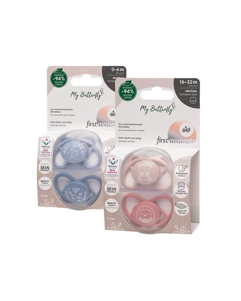 Šidítka nip® first moments "My Butterfly" jsou v krásném moderním designu dostupná ve třech velikostech.