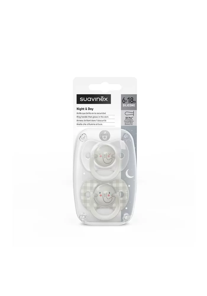 SUAVINEX Šidítko DEN&NOC fyziologické silikon 6-18 m - 2 ks