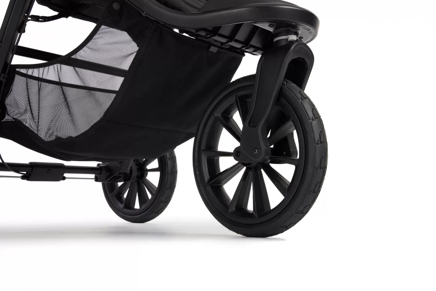Odpružená kola z kaučuku se systémem "Forever-Air" poskytují kočárku i vám hladkou jízdu bez kompromisů na jakémkoli terénu.