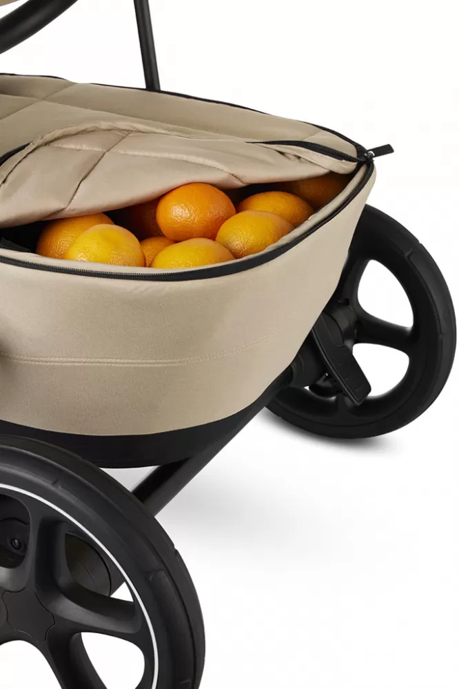 - velký, uzavíratelný spodní košík s rukojeťmi, který se může snadno připnout a odepnout od kočárku, což vám umožní použít spodní košík i na nákup