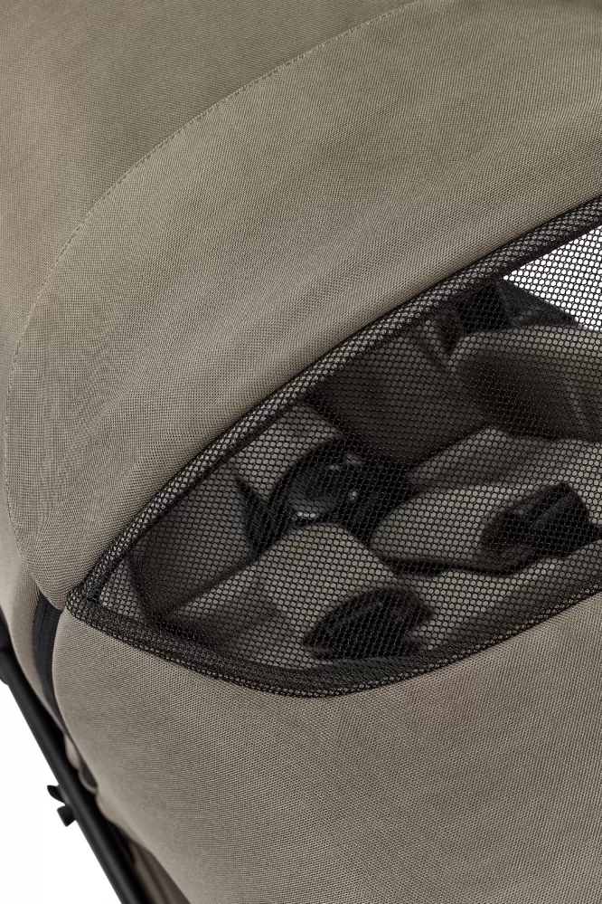 Prostorný sportovní sedák s rozepínatelnou stříškou a krytou ventilační síťkou