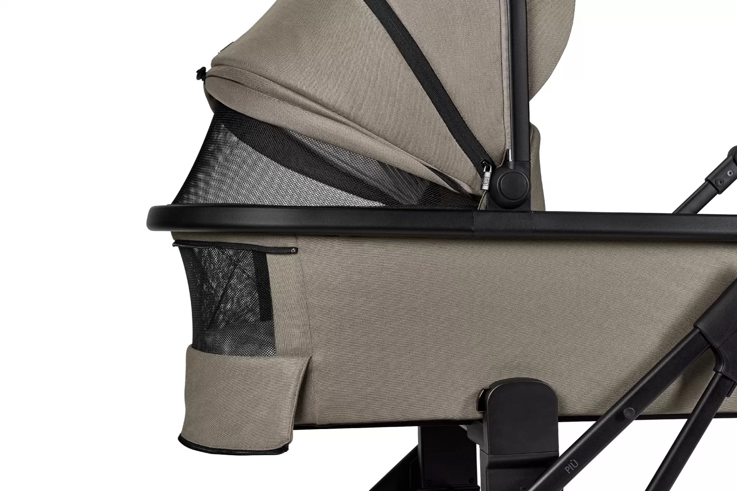 Kočárek MOON PIÚ vyniká krásným a moderním designem. Prostorná hluboká vana s ventilačním odepínacím okénkem a prémiovou matrací od značky Träumeland. Lehký a dobře skladný se sportovní sedačkou po i proti směru. Prodyšné materiály. Má vynikající jízdní vlastnosti vhodné jak do města, tak i do terénu a extra odpružená nafukovací přední i zadní kola.