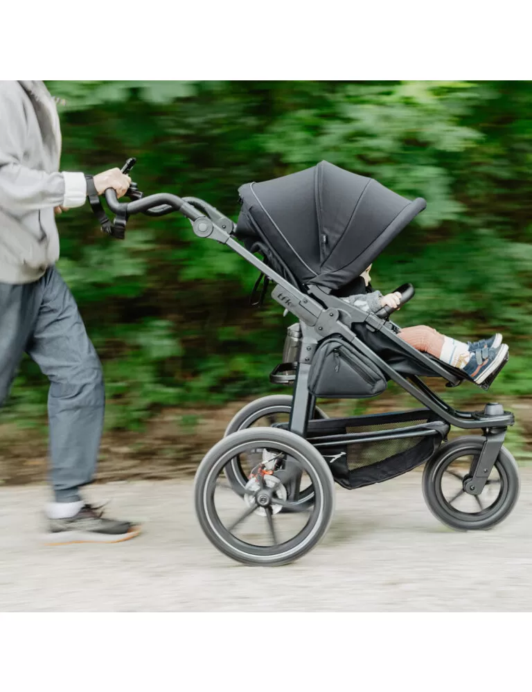 ! Pokud je na konstrukci kočárku nasazená autosedačka je zakázané s kočárkem běhat!