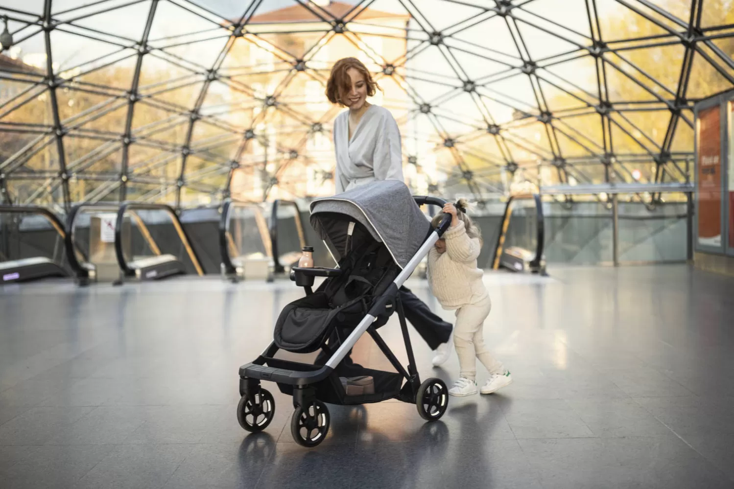 Ať už se vydáte jen na procházku ve své čtvrti nebo vyrazíte veřejnou dopravou, vaše dítě bude vždy jako v bavlnce. Odpružení všech kol zajišťuje plynulou a příjemnou jízdu i na dlažbě městských ulic. Plně výsuvná stříška, možnost sklopení téměř do roviny a vestavěná nožní opěrka nohou poskytují dítěti dokonalé pohodlí a umožní mu zdřímnutí i v rušném městském prostředí.