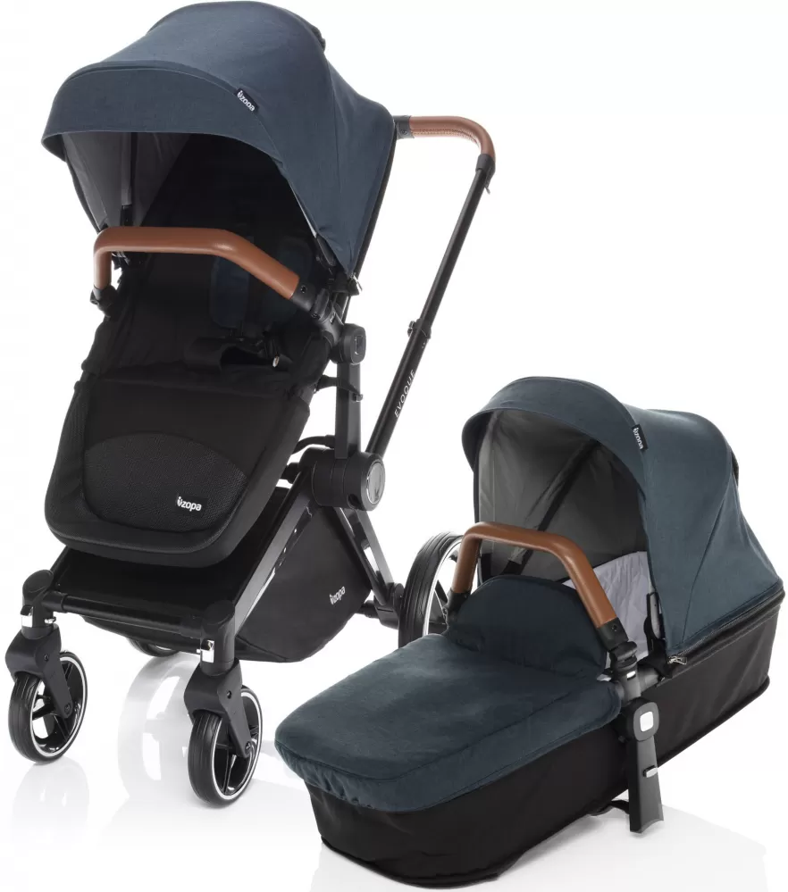 Kočárek Zopa Evoque je designový ale zároveň praktický kočárek pro děti od narození do 15 kilogramů. Jedná se o dvojkombinaci, kdy se z rámu prostorné, hluboké korby vytvoří sportovní sezení. Sportovní sedačka je polohovatelná a lze umísti po i proti směru jízdy. Dítě chrání pětibodový bezpečnostní pás.