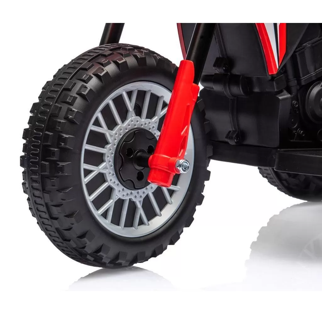 Po zapnutí se ozve zvuk motoru a po sešlápnutí plynového pedálu se motorka rozjede. Velká kola s terénním vzorkem zajišťují stabilitu při jízdě venku a tvarované sedadlo zajišťuje pohodlí a bezpečnost nejmenších uživatelů. Ocelové osy kol zaručují stabilitu a odolnost vozidla. Součástí je také klakson, díky kterému bude hraní ještě zábavnější.
