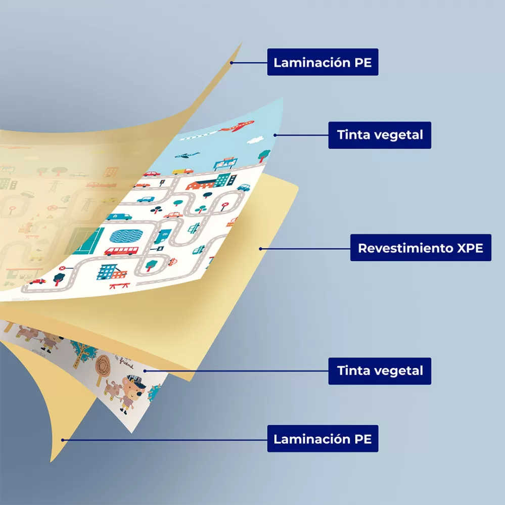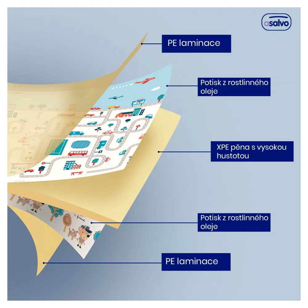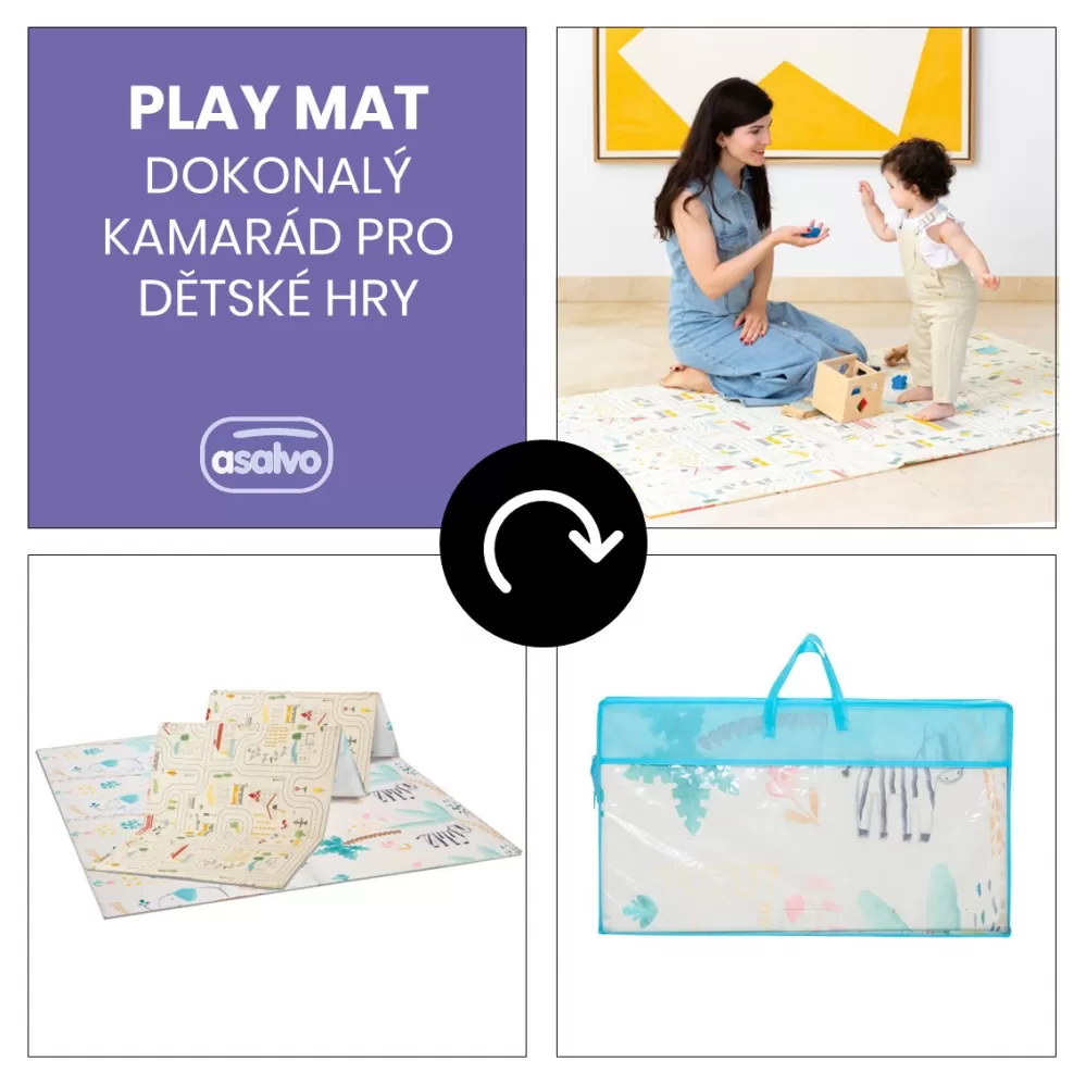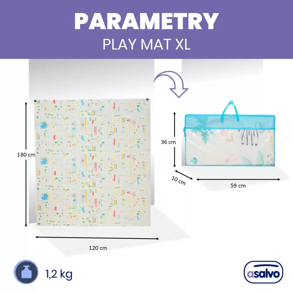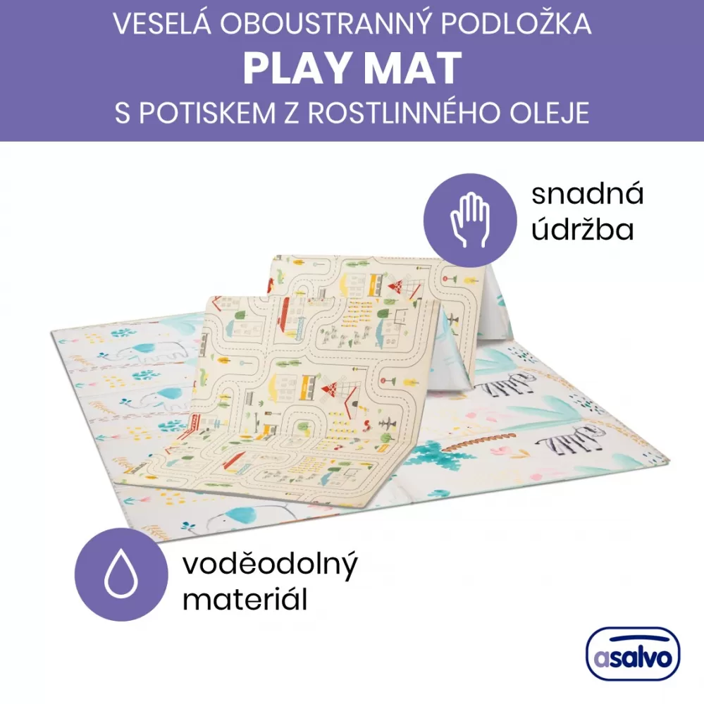 Veselá skládací podložka nabízí mnoho využití. Podložku je možné využít na hraní, cvičení, odpočinek ať už doma nebo na cestách. Veselá podložka má oboustranný potisk, se kterým si děťátko užije spousty zábavy. Na jedné straně je městečko plné uliček, ideální pro malé motoristy, na druhé straně veselý potisk se zvířátky. Potisk v něžných barvách rozvíjí dětskou fantazii a podporuje rozvoj zrakového smyslu a koordinace. Podložka je vyrobena z XPE pěny, což je velmi lehký a zároveň velmi pružný a pevný materiál. Na potisk byl použit inkoust z rostlinného oleje, aby v každém ohledu výrobek odpovídal vysokým bezpečnostním potřebám děťátka. Podložka je dodávána v praktické cestovní tašce, do které si svou oblíbenou podložku můžete jednoduše složit a vzít s sebou ať už na dovolenou nebo k babičce.
