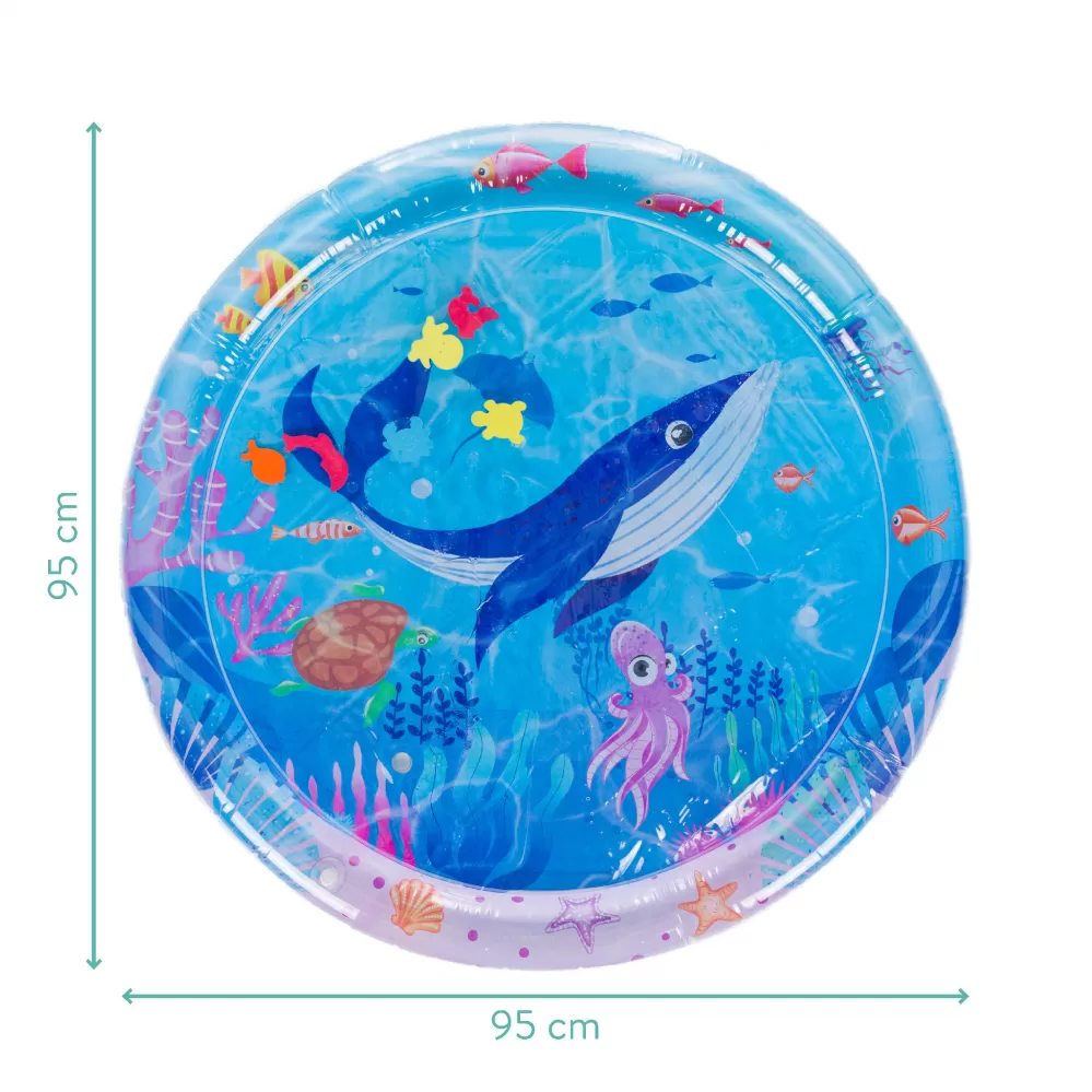 S touto kulatou vodní hrací podložkou (Ø 95 cm) může vaše dítě objevovat fascinující podmořský svět, a to pohodlně a v suchu! Ať už v dětském pokoji, obýváku nebo venku na zahradě, barevná vodní podložka promění každé místo v malé dobrodružství.
