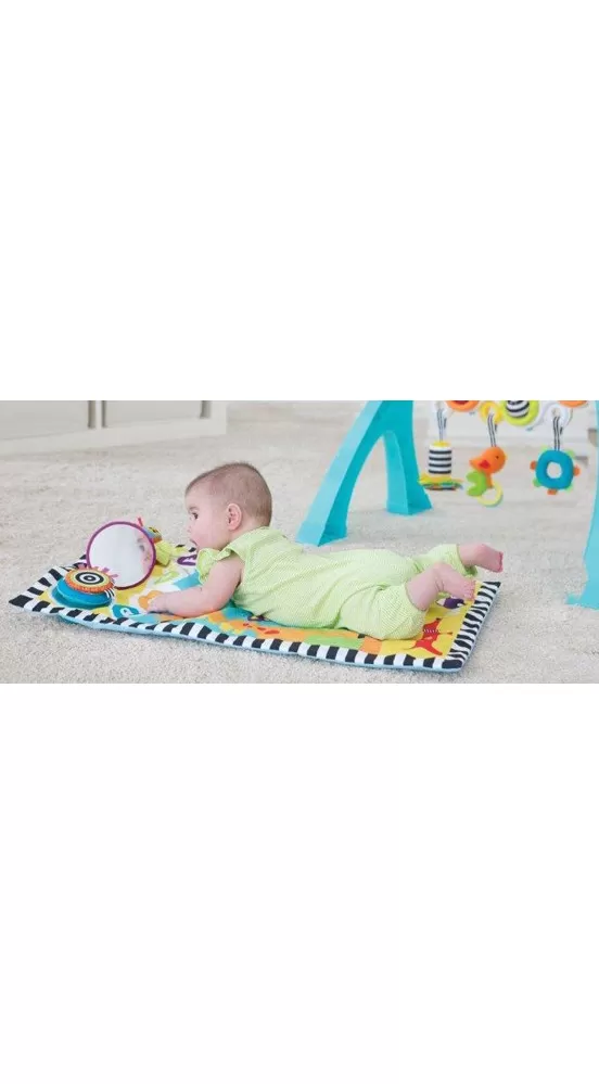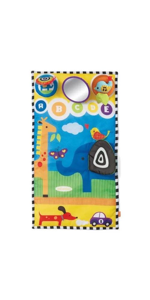 Barevná deka se spoustami aktivit pro Vaše malé miminko. Přímo na dece je motýlek a ptáček, kterým šustí křidélka. Na deku lze připevnit dvě aktivní hračky, které jsou součástí deky.